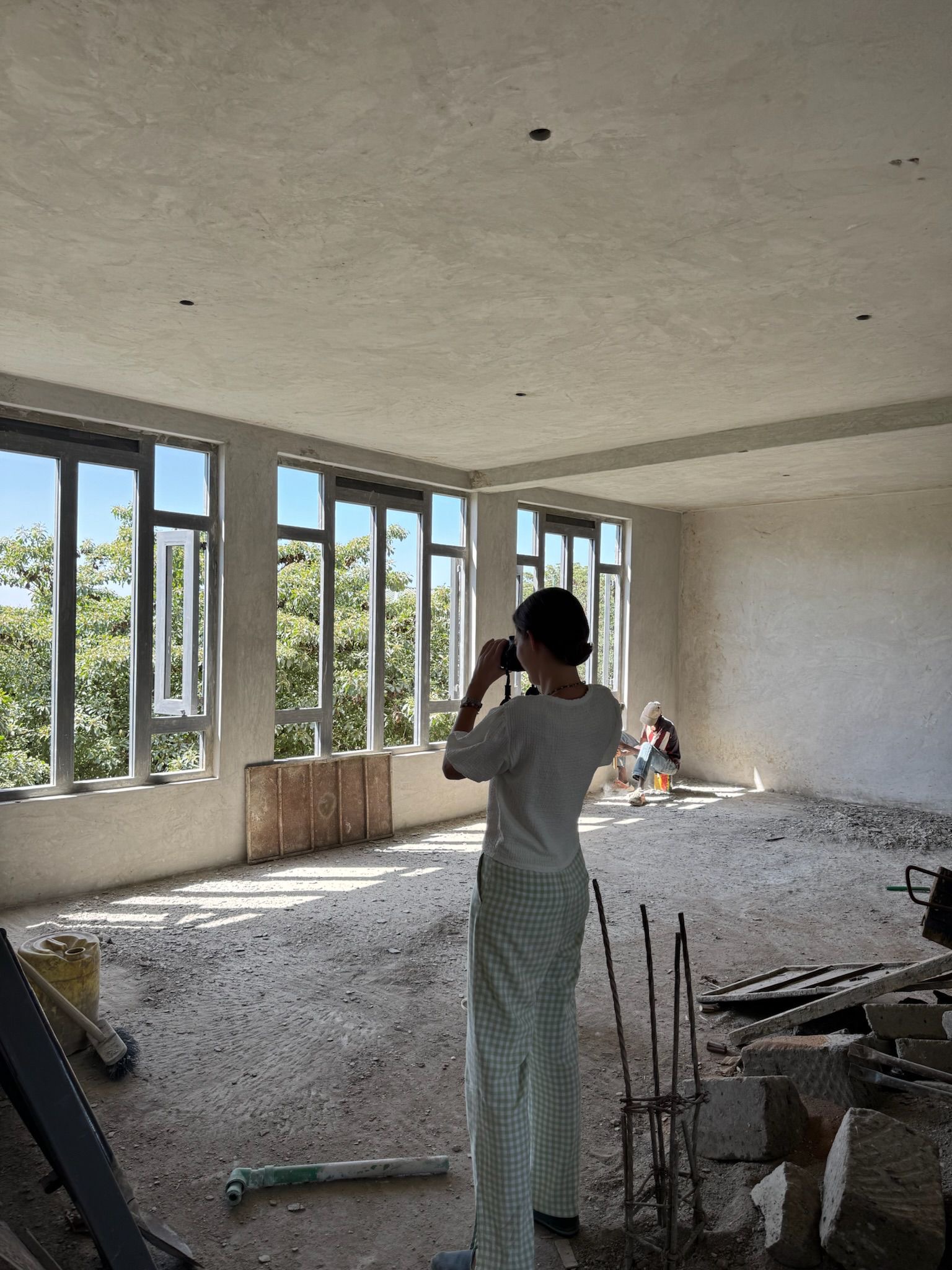 Lucía viendo la construcción desde dentro